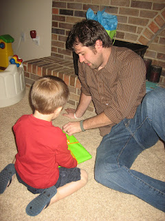 Last year for Halloween, our friends Corey and Blythe invited us over to their house for dinner and trick-or-treating. This year they did the same, so a few hours ago we headed to their house for an evening of fun. For the kids costumes this year, I snagged an awesome deal at a consignment sale a few weeks ago and got both costumes for $9! Here is a picture of the two of them together....this is best picture we could get because they were too excited/hungry/unwilling to sit still.